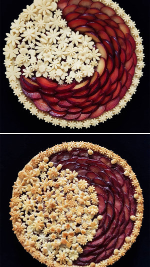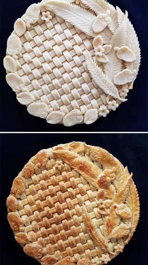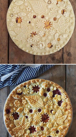 Необычные пироги Карин украшает фруктами и орнаментом из теста