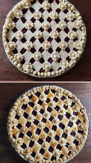 Девушка печет бесподобные пироги, похожие на произведения искусства
