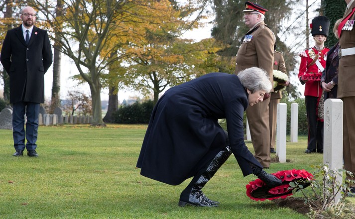 Тереза Мэй прибыла с рабочим визитом в Бельгию. Там премьер-министр Великобритании вместе со своим бельгийским коллегой Шарлем Мишелем посетила церемонию возложения венков к 100-й годовщине окончания Первой мировой войны, на военном кладбище Святого Симфория в Монсе.