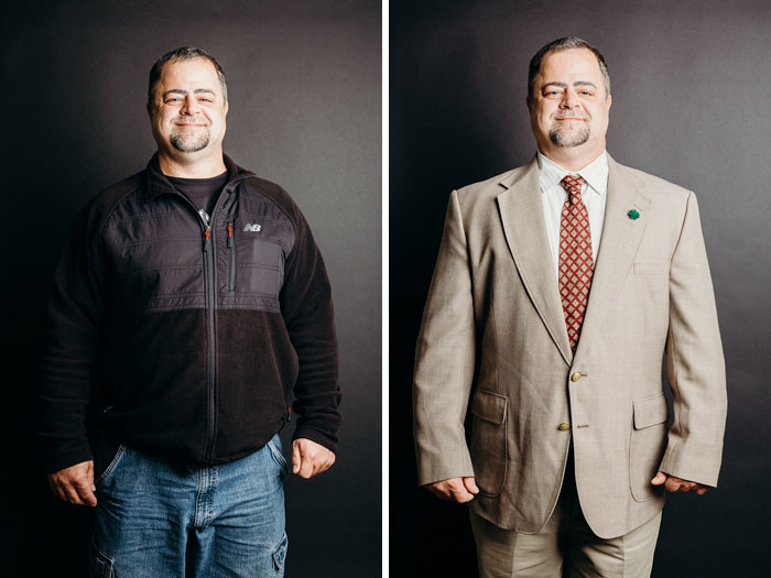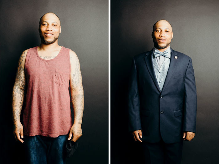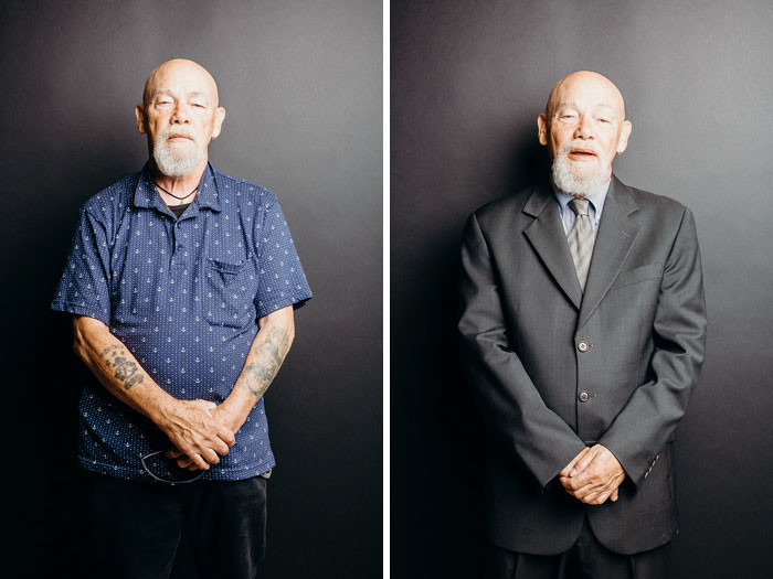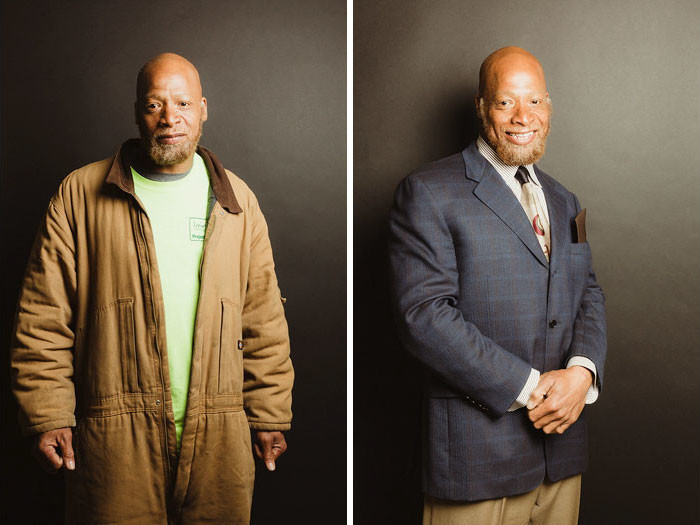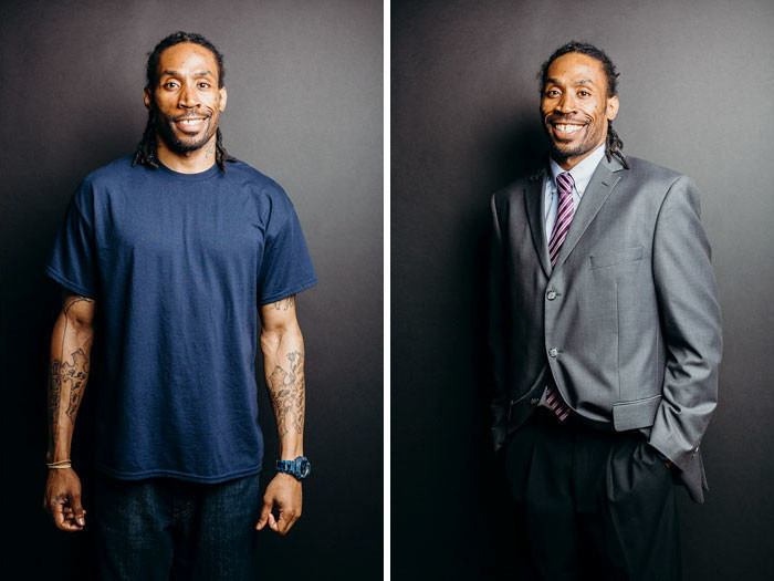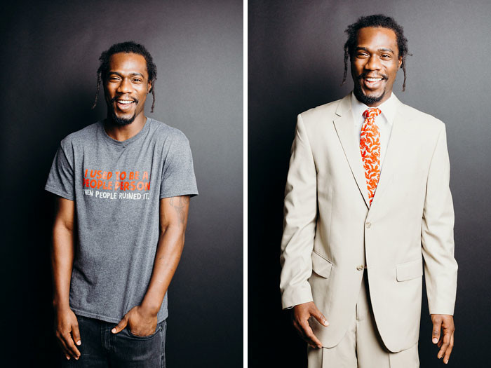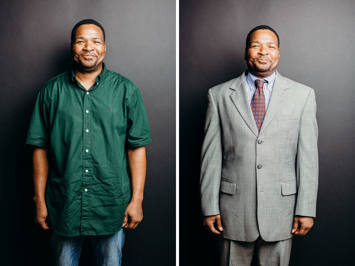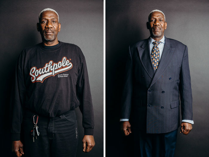 Поэтому в течение недели он начал организовывать сбор пожертвований, а по средам принимать мужчин, предлагая еду, стрижку и костюм. И перевоплощения людей, которым он таким образом помог вернуть жизнь в норму, действительно впечатляет!