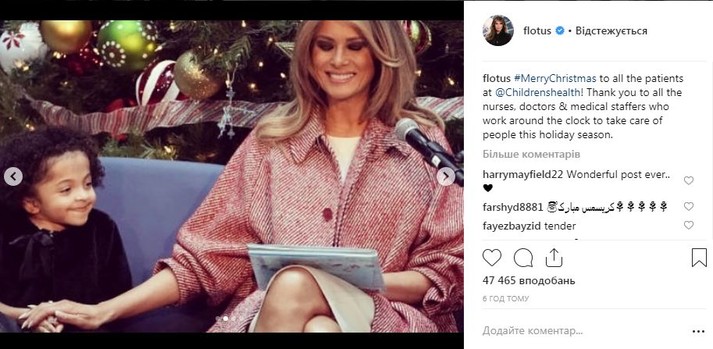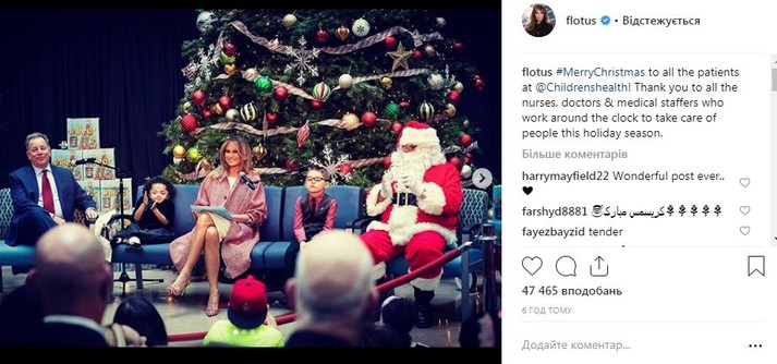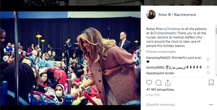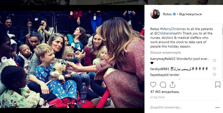 Таким образом Мелания продолжила многолетнюю традицию, зародившуюся 60 лет назад: каждая первая леди США, начиная с Бесс Трумэн, в преддверии Рождества посещает Children's National Hospital.