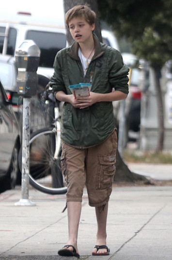 На днях папарацци подловили 12-летнюю Шайло Джоли-Питт во время похода по магазинам со своим телохранителем. Дочь Анджелины Джоли и Брэда Питта была одета в уже привычные спортивные короткие штаны, футболку и болотную куртку на молнии. Девочка, которая несколько лет назад внезапно решила, что она мальчик по имени Джон (говорят, она устраивает истерики каждый раз, когда к ней обращаются по-другому), по слухам, готовится к операции по смене пола.
