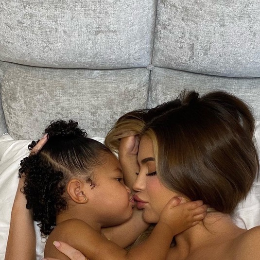Дженнер также поделилась случайным фото, сделанным во время съемки. Кадр получился невероятно трогательным. На нем Сторми нежно прикоснулась своей маленькой ручкой к лицу мамы и вытянула губки, чтобы ее чмокнуть. Кайли закрыла глаза и приготовилась к поцелую.