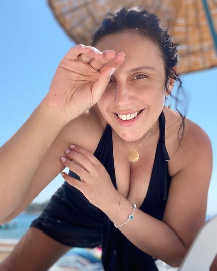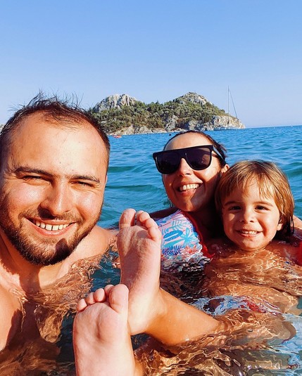 В своем Инстаграме артистка поделилась счастливыми кадрами с пляжа, на которых запечатлена в черном купальнике. А позже опубликовала и яркие и счастливые семейные кадры с мужем и старшим сыночком, двухлетним Эмиром-Рахманом.