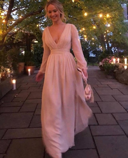 Дженнифер Лоуренс в платье с глубоким декольте отпраздновала помолвку