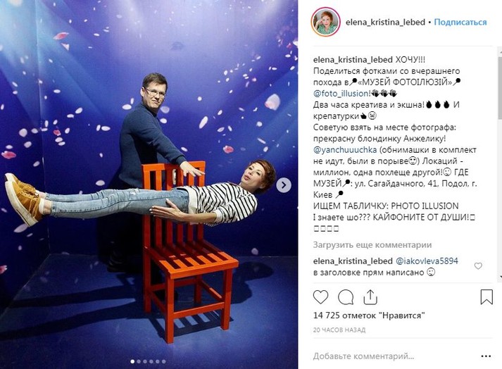 На своей странице в Instagram телеведущая опубликовала забавные снимки с Розенко из музея фотоиллюзий.