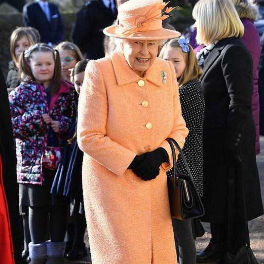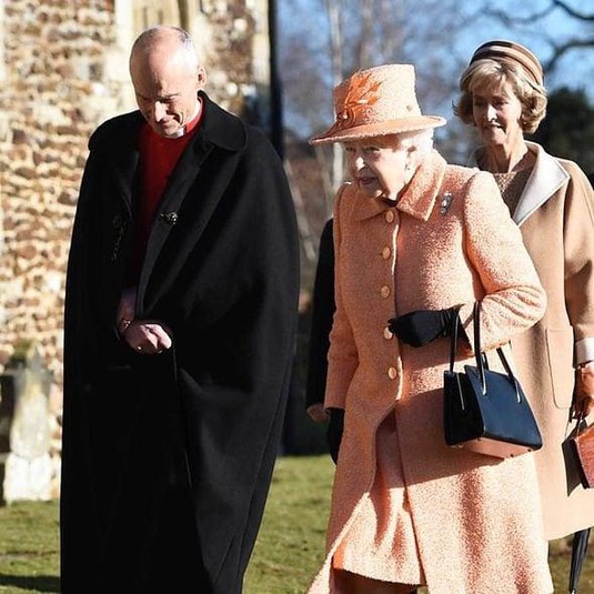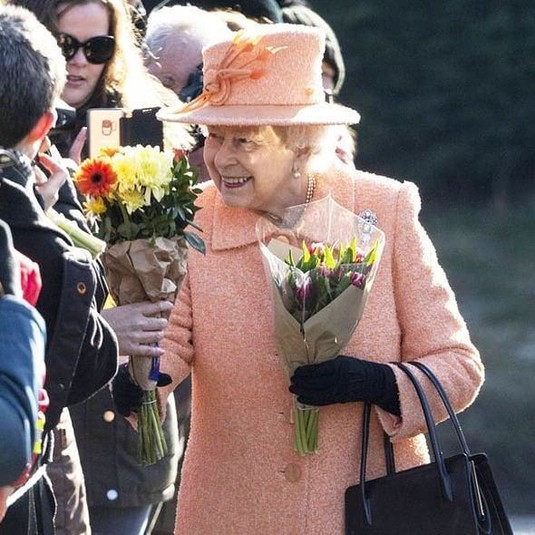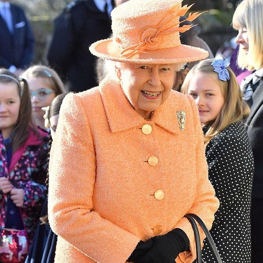 В минувшее воскресенье Елизавета II посетила церковь в Норфолке. Погода радовала вышедшем солнцем, так что для похода в храм королева выбрала подходящий по такому случаю наряд: шерстяное платье и пальто персикового цвета и шляпку в тон. Довершили образ теплые перчатки. По пути в церковь Святого Петра и Павла королева тепло приветствовала своих подданных, которые преподнесли ей нарциссы, а также букет розовых и белых цветов.