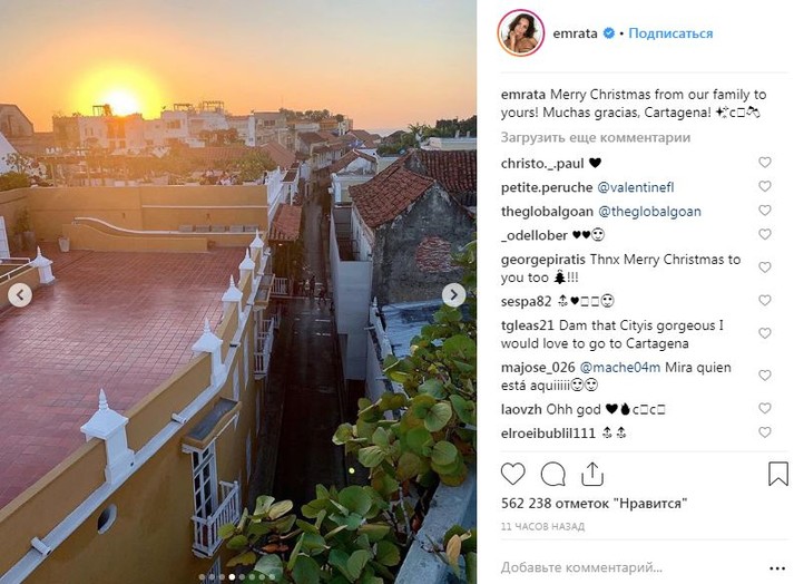В то время как голливудский звезды публикуют в социальные сети рождественские фото с подарками и елью, Instagram Эмили Ратаковски пестрит пляжными снимками. Модель отправилась с родителями и супругом в Картахену.