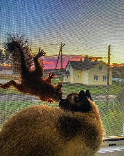 «Как должен был закончиться «Том и Джерри»», «У всех есть такой друг, который любит портить фотографии, «Товарищ всегда подставит теплый бок», «Пушистые друзья», «Дружбе различия не помеха, «Когда вы вместе и в радости, и в шалости», - комментируют фото пользователи сети.