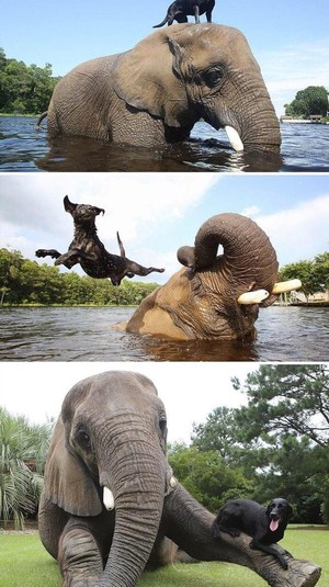 Коты и собаки легко уживаются не только друг с другом, но и с мышами, козлятами и даже слонами. И результатами таких отношений становятся умилительные фотографии пушистых друзей.
