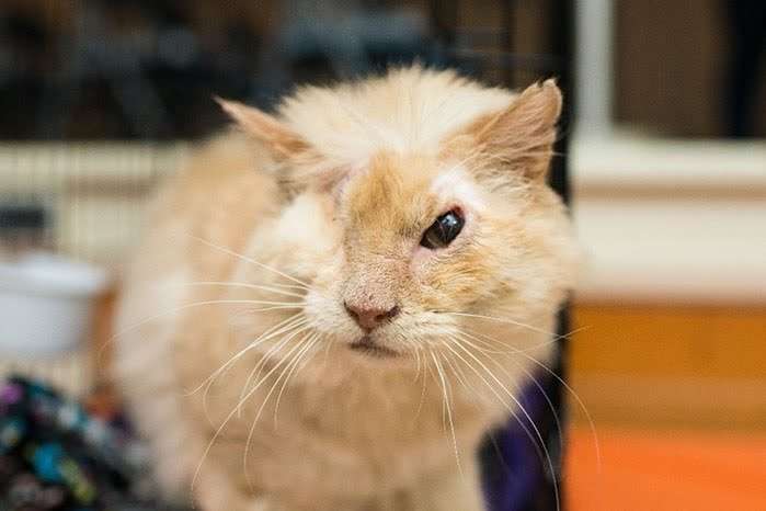 Этот несчастный кот был намеренно облит кислотой, в следствии чего он потерял свой правый глаз