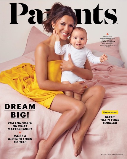Актриса Ева Лонгория и её годовалый сын Сантьяго Энрике стали звездами августовской обложки Нью-Йоркского глянцевого журнала «Parents». Лонгория поделилась фото и видео с бэкстейджа съёмок, восхищенно сказав во вступительной речи к видео, что она — родитель.