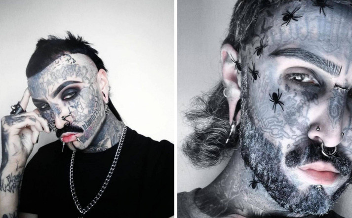27-летний Филип Ройер любит татуировки с детства. Первый рисунок на своей коже житель Монреаля захотел сделать уже в 13 лет. В 18 он стал визажистом, а в 20 обучился на тату-мастера. Филип обожает разного рода мистику, и это сразу видно по его внешности. Больше всего он любит вампиров, сообщает Daily Star.