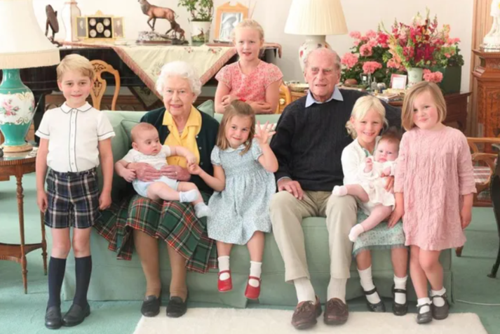 В один из таких дней герцогиня Кембриджская запечатлела правнуков королевы и ее мужа. Елизавета II и Филипп позировали в гостиной шотландской резиденции в окружении детей. Правящая монаршая особа держала на руках принца Луи, которому не было еще и года. Шарлотта сидела между прабабушкой и прадедушкой, а Джордж стоял сбоку от королевы. Саванна позировала, облокотившись на диван, а Мия, Лина и Айла — рядом с герцогом Эдинбургским.