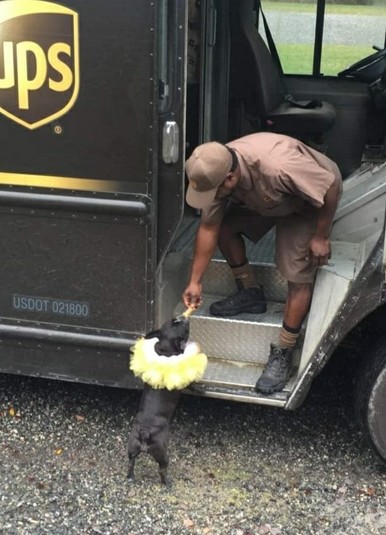 Водители службы доставки UPS в США возят посылки 24 часа в сутки, каждый день встречая на своих маршрутах много собак, а также кошек и некоторых других животных. Когда у них есть время и припасенные лакомства, водители останавливаются, чтобы угостить своих четвероногих друзей, а также обнимают их и играют с ними. Фотографии и видео встреч они отправляют в специальное онлайн-сообщество водителей UPS Dogs.