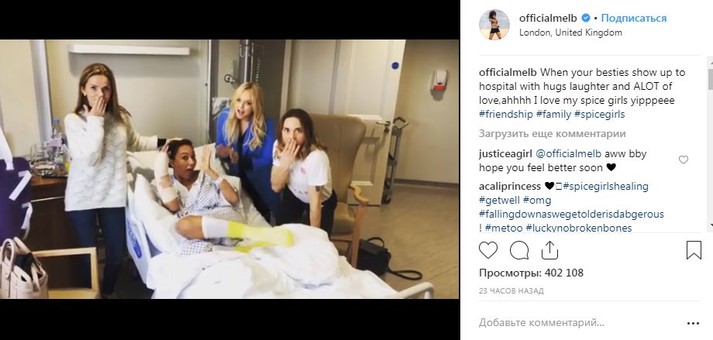 «... О, эта боль, моя рука вся в швах, и я стараюсь не двигаться, чтобы сломанные ребра срастались», - написала слдистка группы Spice Girls. Также артистка сообщила, что это был несчастный случай.