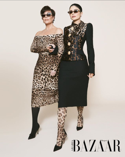 Звездная семья сменила несколько модных образов во время фотосессии. Так, Кайли позировала в жакете с леопардовым принтом, черной юбке, комбинезоне, бирюзовом костюме, черном тренче и красном кожаном пальто. Крис и Сторми тоже примерили наряды с анималистическим принтом.