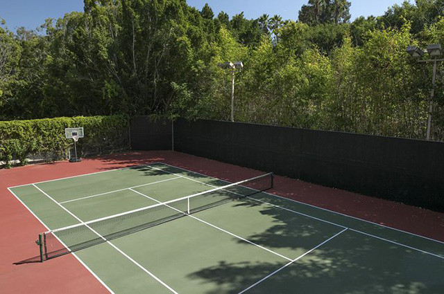 Особое место в проекте дома занимает ландшафтная часть усадьбы, спроектированная архитектором Полом Тьеном. На ее территории есть огромные бассейны, теннисный корт и зоны для отдыха.