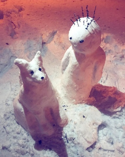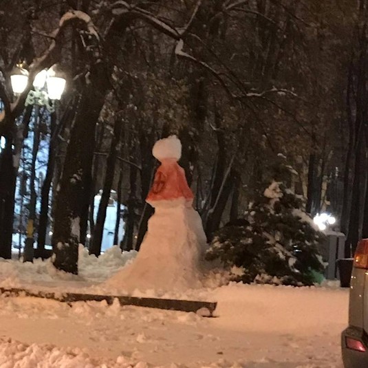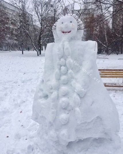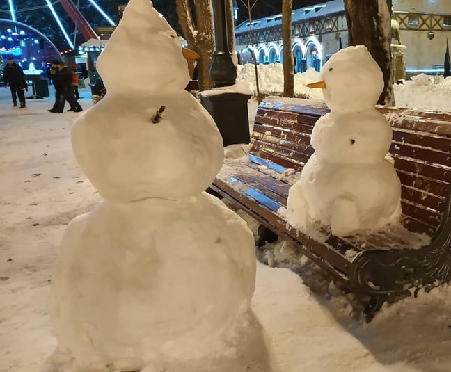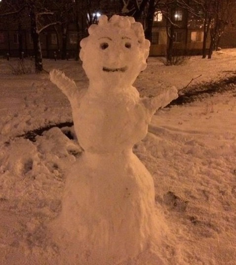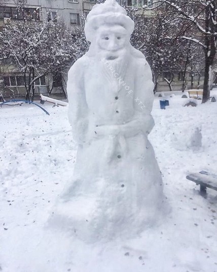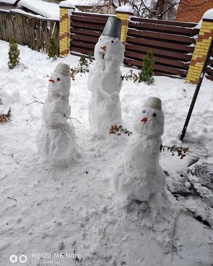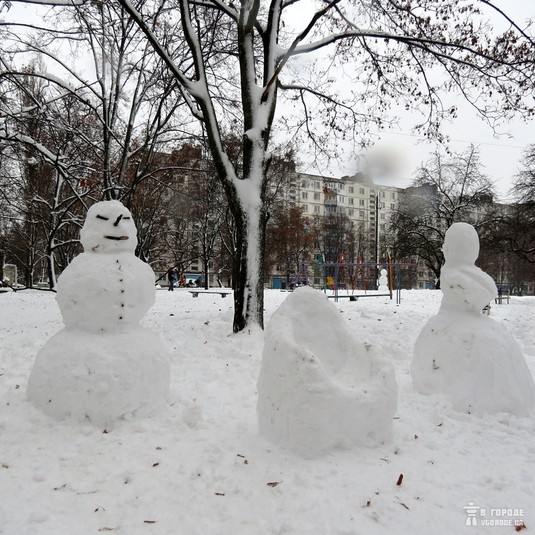 Маленькие дети, да и взрослые люди взялись за лепку снеговиков. В социальных сетях, горожане хвастаются «классическими» снежными человечками и креативными скульптурами: например, Шварценеггера и крестоносца.