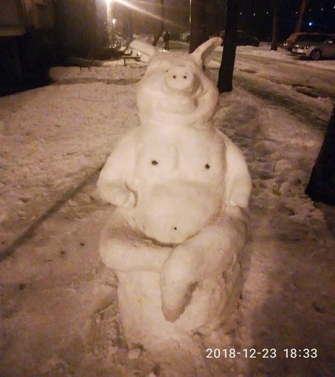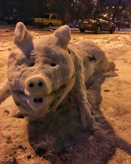 Есть среди снеговиков и много «хрюшек» — в честь символа наступающего года.