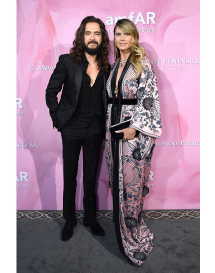 В этот раз звездная пара посетила гала-вечер благотворительной организации amfAR в Париже. Для выхода в свет Клум решила надеть шелковое платье-кимоно, а Каулитц выбрал черный total-look.