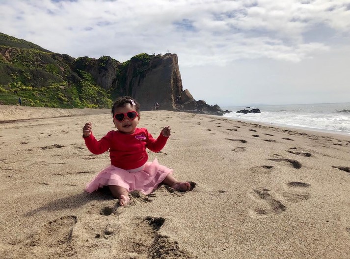 Запись с первыми шагами сделана в доме Хлои. Девочка в белой ночной рубашке стоит у детского бассейна с шариками. Она крепко держится за бортик. «Иди сюда», - зовет Кардашьян дочку. Та делает несколько несмелых шагов навстречу маме, и звезда бурно радуется.