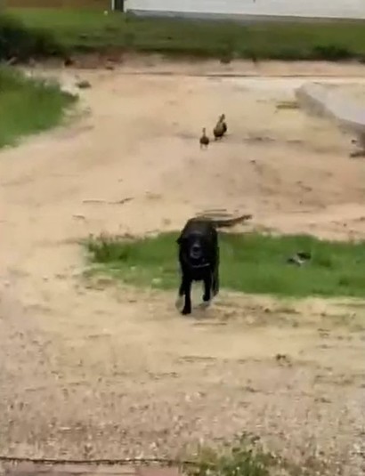 В это время хозяйка животных Мисти Робертс заметила исчезновение собаки и забеспокоилась, но вскоре увидела ее рядом с утками на озере и продолжила заниматься своими делами.