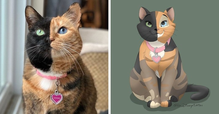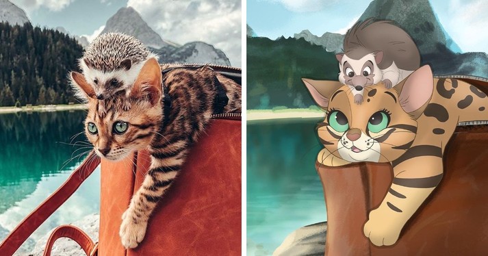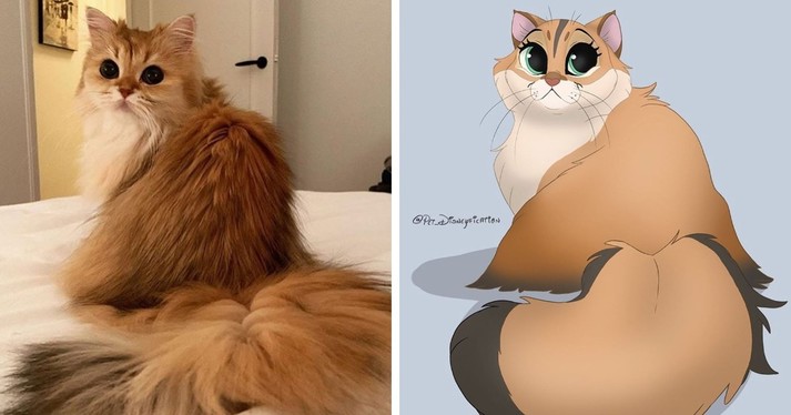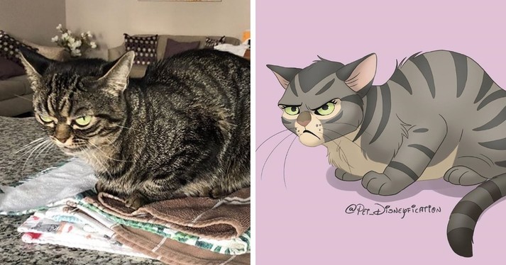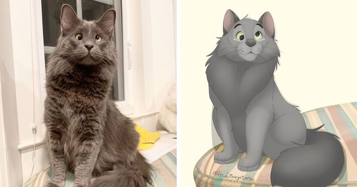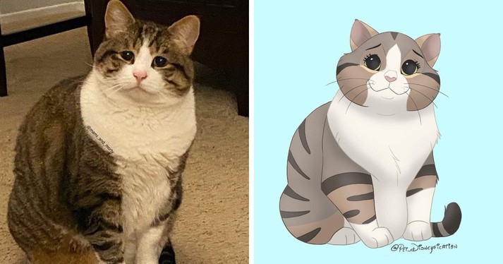 Художница из Нидерландов по имени Иса перерисовывает понравившихся ей домашних животных, обнаруженных в Инстаграме, в диснеевской стилистике, превращая их в героев мультиков.