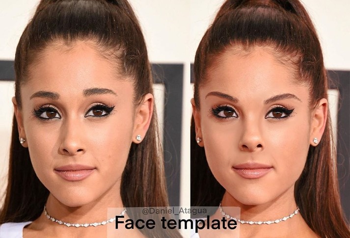 Художник-самоучка Даниель Атагуа решил проверить, как изменятся знаменитости, если к ним применить правило золотого сечения. Для этого Даниель нашёл шаблон лица, который соответствует принципам золотого сечения. Художник накладывает его на лицо звезды, а затем подгоняет черты к этому идеалу.
