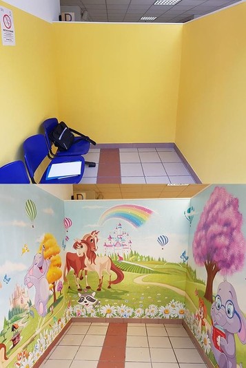 «Когда вы входите в комнату, созданную художником Сильвио Ирилли, у вас возникает ощущение, что вы оказываетесь в большой фреске, которая дарит взрослым спокойствие и заставляет детей продолжать мечтать», — написано на сайте, и спорить с этим трудно. А ещё они призваны поддерживать врачей, которые должны сопровождать пациентов.
