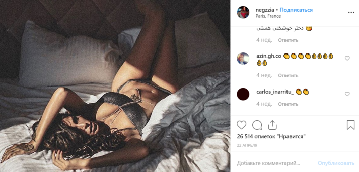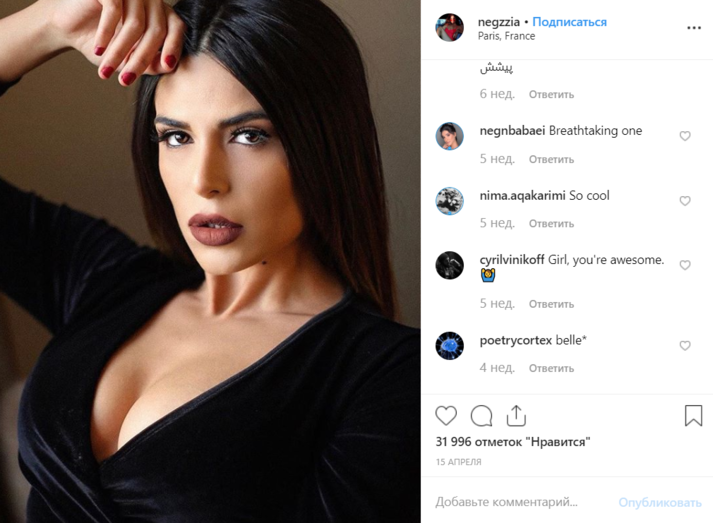 Девушка работала моделью с 22 лет. Два года назад фотографа, который провел с ней фотосессию в белье, арестовали. А фотографии Негджии были признаны «нескромными» и «непристойными». Ей грозило наказание – 148 ударов плетью. Но она успела сбежать. Сложив вещи в один рюкзак, иранка отправилась в Турцию.