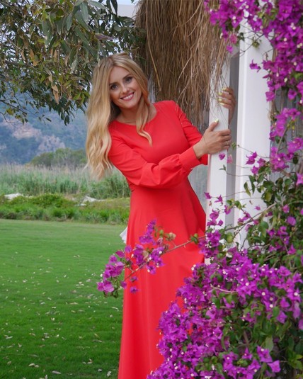 На своей странице в Instagram украинская певица Ирина Федишин опубликовала снимок с отдыха, на котором позирует в длинном красном платье посреди роскошных цветов.