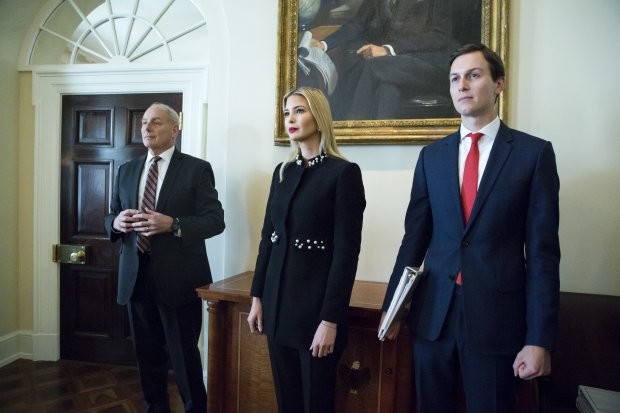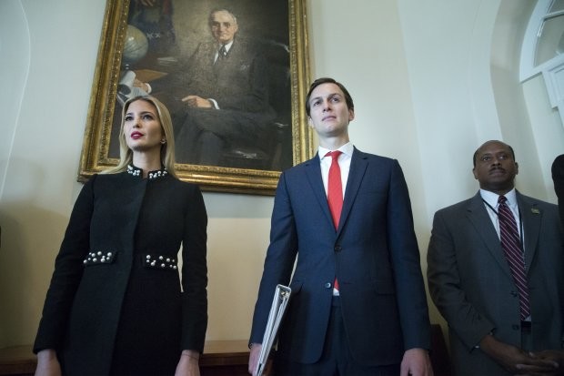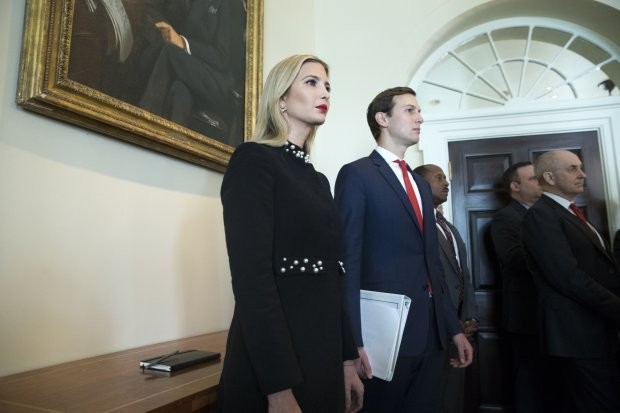 Дочь президента США Дональда Трампа Иванка приняла участие в заседании Кабинета Министров в Вашингтоне, которое проводил глава Белого дома. Специально для этого мероприятия она выбрала элегантный черный костюм, пиджак которого был украшен белыми жемчужинами.