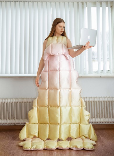 Из одеял и подушек. Дизайнер создала идеальный наряд для карантина (фото)
