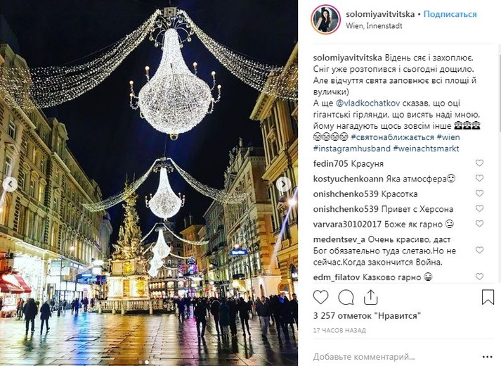 Волшебными снимками Вены поделилась в соцсети известная украинская телеведущая Соломия Витвицкая.