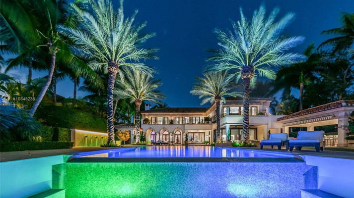 Роскошный особняк пары может похвастаться 10 спальнями, 12 ванными комнатами, просторной гостиной с антикварной мебелью и камином, винными залом, обшитым деревянными панелями, а также живописным патио с бассейном и панорамным видом на залив Бискейн, пляж и бескрайнюю гладь океана. К дому прилагается собственный причал, так что будущим супругам можно не волноваться, что вездесущие папарацци смогут их подкараулить.
