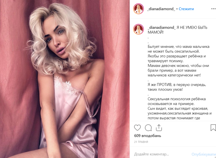 Основной контент страницы кандидата – откровенные фото в белье, которые сопровождаются размышлениями о правильном питании, фигуре и сексуальности. Также у Дианы двое сыновей.