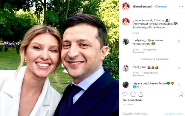Примечательно, что на ее странице также размещено фото Владимира и Елены Зеленских с подписью: «Счастливый исторический день!».