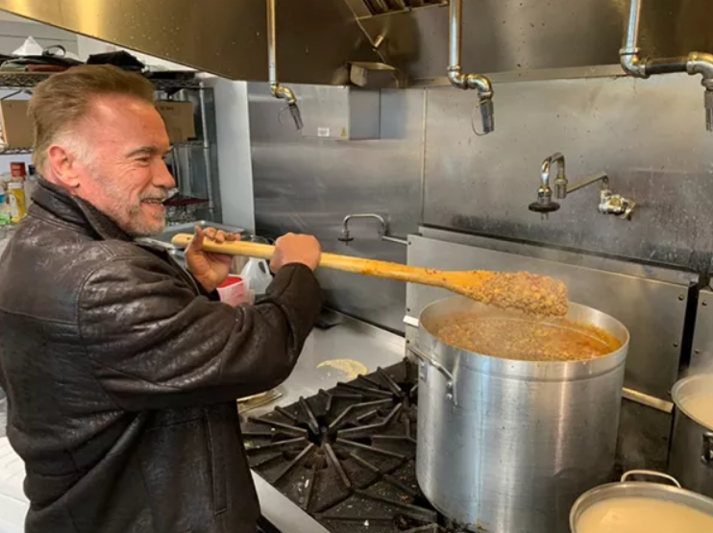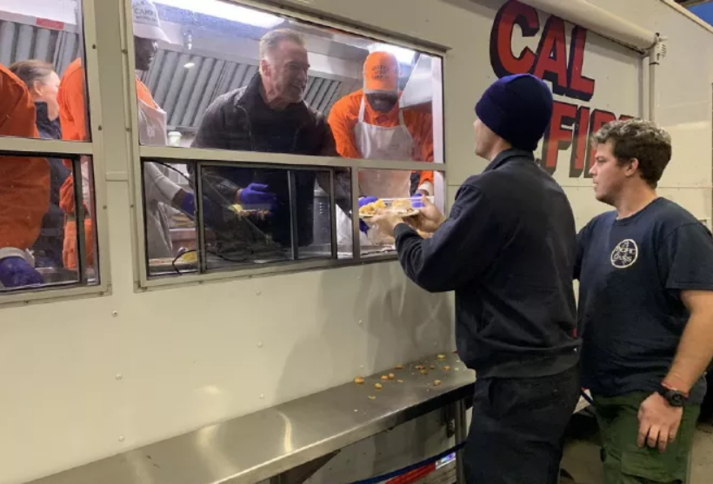 Каша «по-терминаторски»: Арнольд Шварценеггер накормил пожарных в Калифорнии