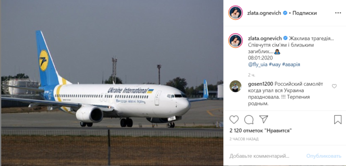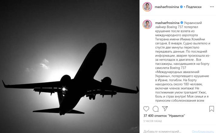 Катастрофа украинского лайнера в Иране: реакция украинских звезд