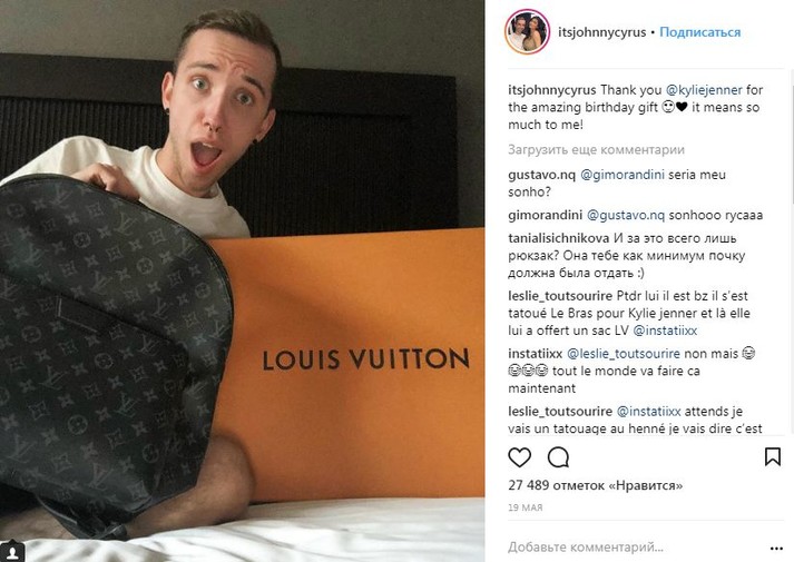 На днях девушка подарила Джонни Сайрусу из Милуоки рюкзак Louis Vuitton за 2 тысячи долларов просто за то, что он такой преданный поклонник.