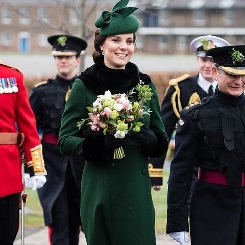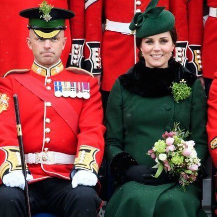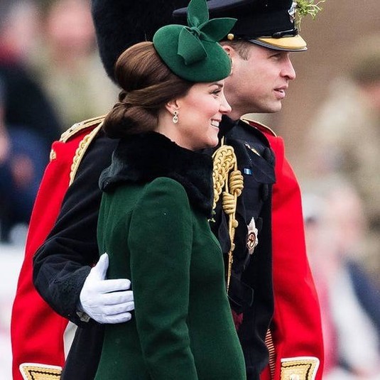 Сегодня 37-летняя Кейт Миддлтон и 36-летний принц Уильям приняли участие в ежегодном параде ирландских гвардейцев в честь Дня святого Патрика, который прошел в лондонском районе Хаунслоу.
