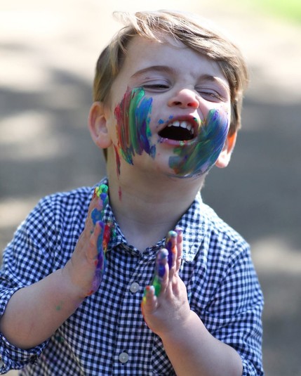 «Мы рады поделиться фотографиями принца Луи, сделанными герцогиней в апреле этого года, в преддверии его второго дня рождения», — гласит подпись к серии милых кадров с крохой. Судя по всему, Кейт сняла своего младшего сына, пока он занимался рисованием. Поэтому снимки получились довольно красочными.