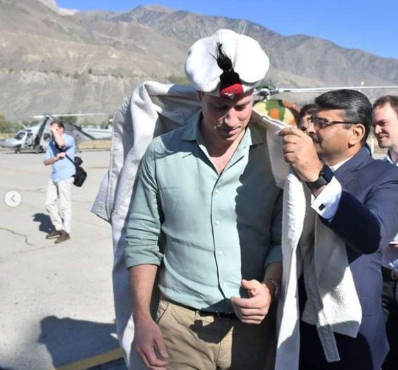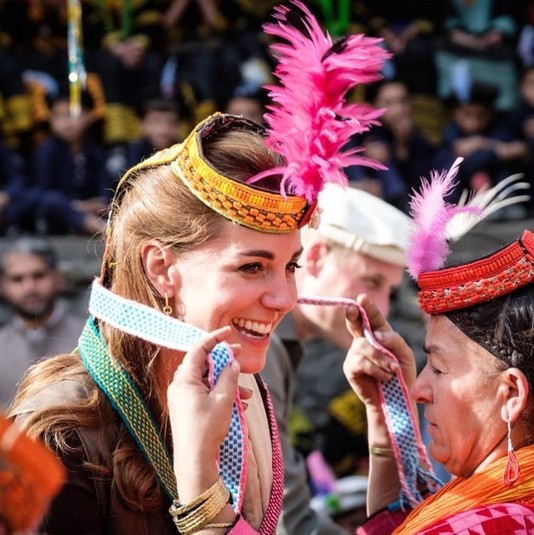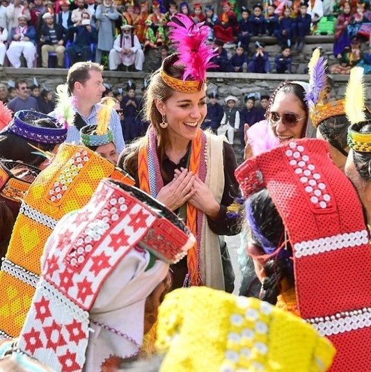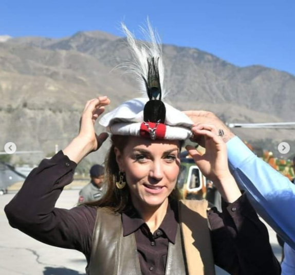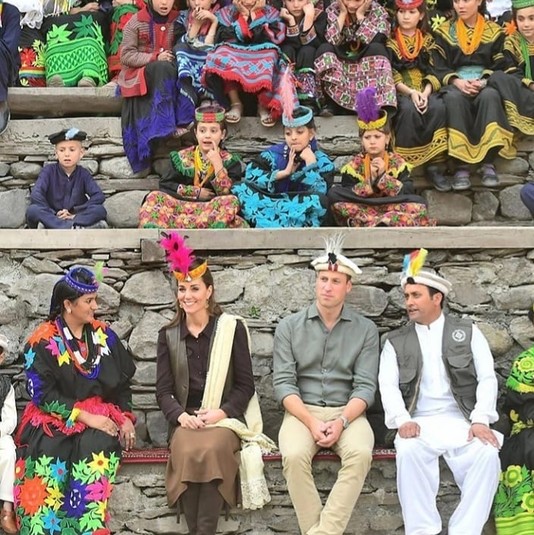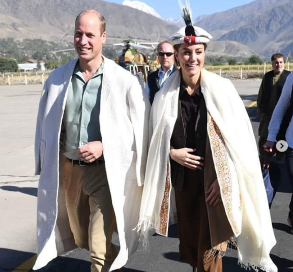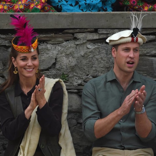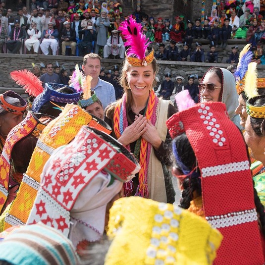 Кейт Миддлтон и принц Уильям приехали с официальным визитом в Пакистан. С собой Кэтрин привезла много нарядов. Ко всему прочему, многие образы герцогиня скопировала у принцессы Дианы, начиная от изящного платья, в котором она появилась в первый день и заканчивая пальто яркого цвета аквамарина. 16 октября супруги направились на север страны. Они побывали на границе с Афганистаном. Там, в городе Читрал, им подарили национальные наряды.