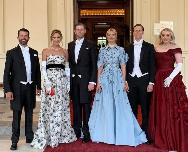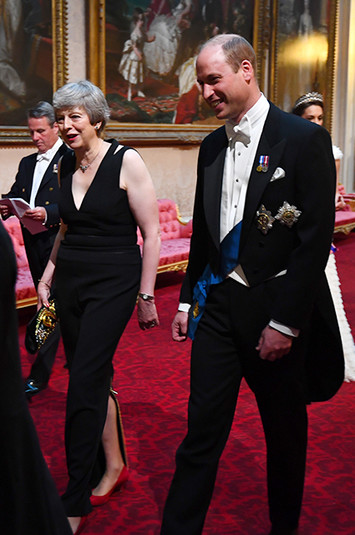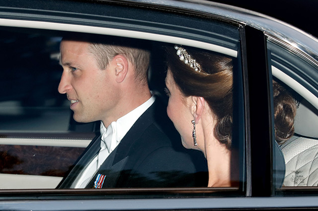 Государственный банкет во дворце посетили многие члены британской королевской семьи, в том числе и 37-летняя Кейт Миддлтон с 36-летним принцем Уильямом. Герцогиня Кембриджская выбрала для выхода длинное белое платье от Alexander McQueen. и одну из самых знаменитых тиар из коллекции Елизаветы II – «Узелки любви».