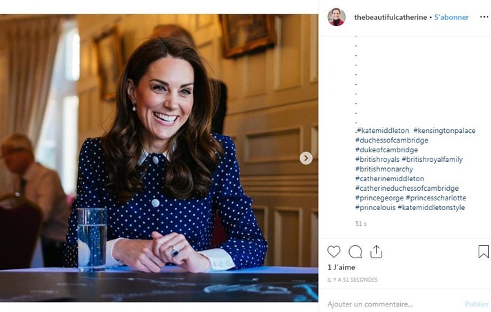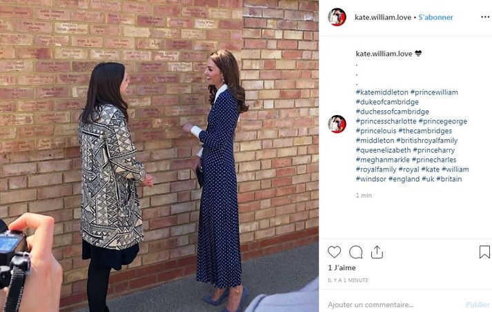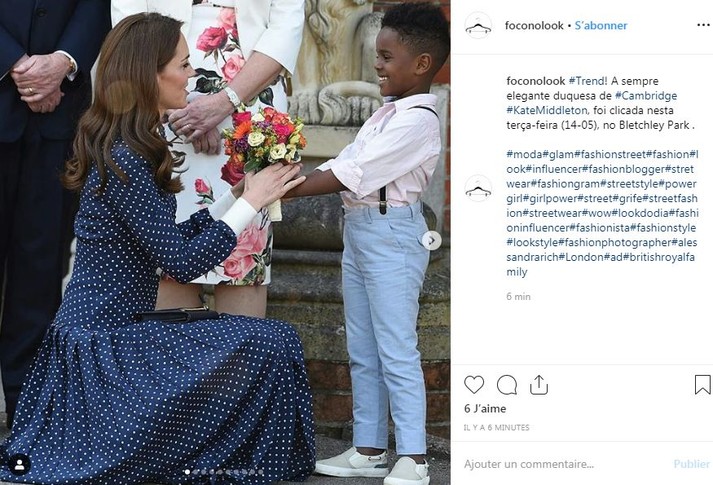 В этот день герцогиня выглядела женственно и элегантно. Она надела длинное, воздушное платье Alessandra Rich в горошек, стоимостью $2300, и голубые замшевые лодочки. Это платье Кейт Миддлтон уже неоднократно надевала — ранее она появилась в этом наряде на 70-летии принца Чарльза.