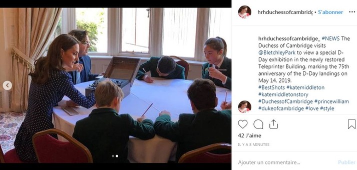 Сегодня, 14 мая, Кейт Миддлтон посетила особняк Блетчли-парк, который находится в одноименном городе графства Бакингемшир. Здесь во время Второй мировой войны располагалось главное шифровальное подразделение Великобритании. Здесь же в это время работала бабушка Кейт Валерии Глэсборроу. Супруга принца Гарри приехала в этот городок ради специальной выставки, посвященной 75-й годовщине Высадке в Нормандии.