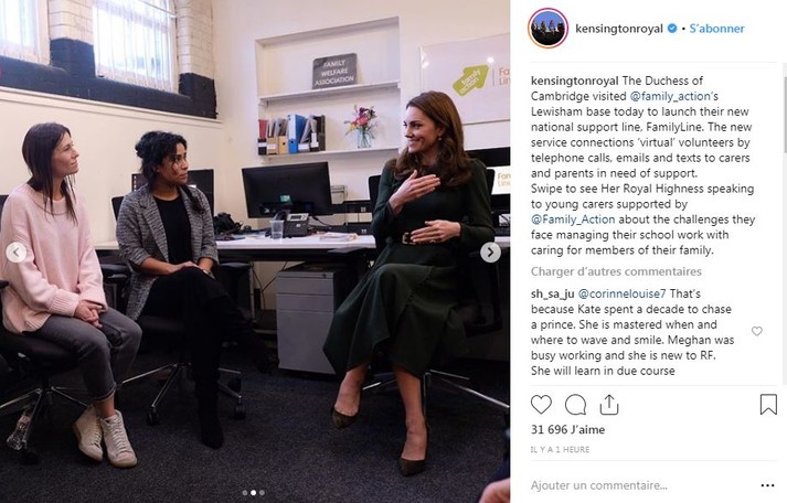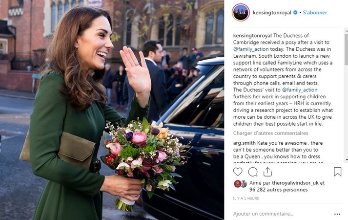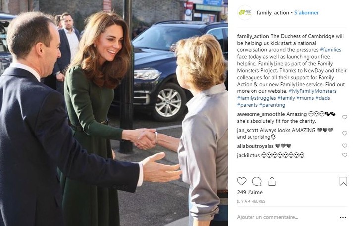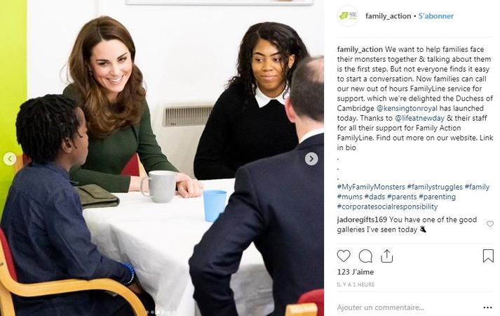 В этот солнечный лондонский день герцогиня провела встречу с организацией Family Action и запустила в работу новый конфиденциальный телефон доверия для нуждающихся семей. Во время визита она встретилась с семьями, поддерживаемыми организацией, а также провела время с молодыми опекунами и волонтерами, которые помогали в создании линии. В этом году Family Action исполняется 150 лет, и участие Кейт в судьбе сервиса как нельзя лучше поможет им привлечь еще больше внимания к своему новому проекту.