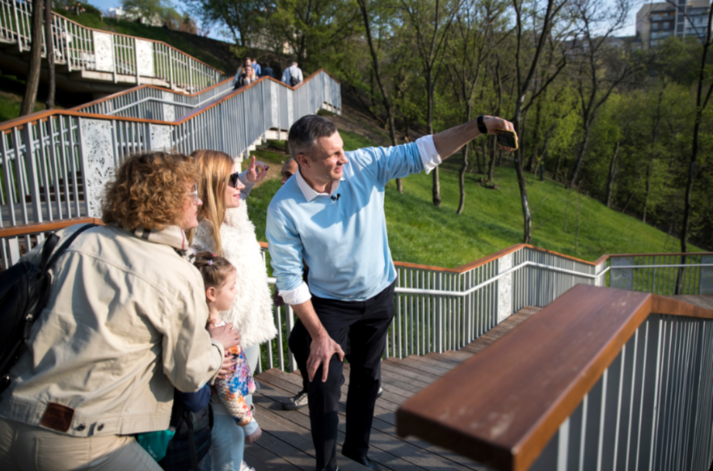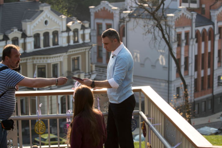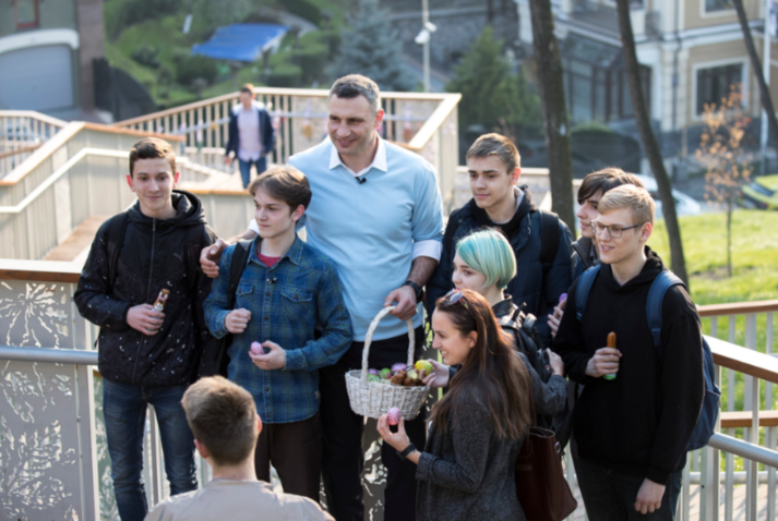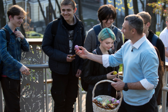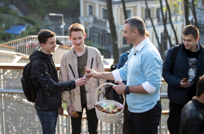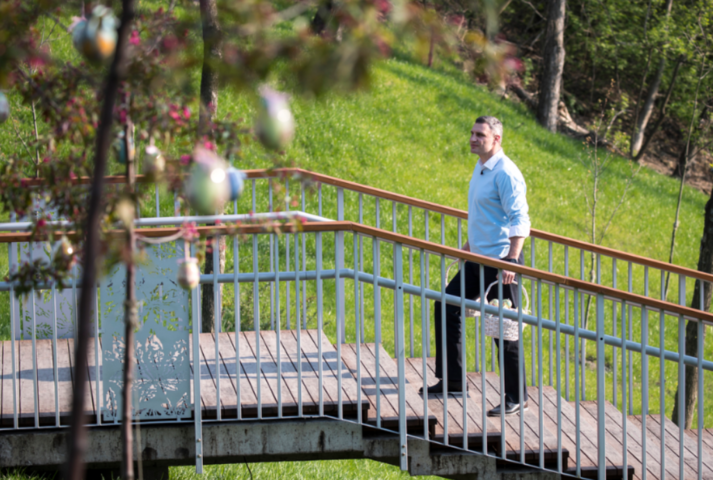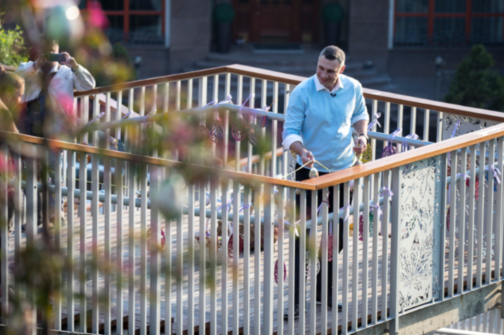 На видео мэр украшает пасхальные яйца и гирляндами лестницы с Пейзажной аллеи на Подол в урочище Гончары-Кожемяки. Эти лестницы открыли в столице летом прошлого года. Они стали частью большого туристического маршрута, который соединит Пейзажную аллею с Аркой дружбы народов.