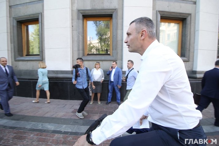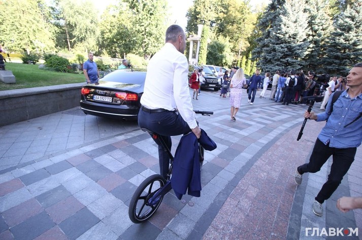 Мэр Киева Виталий Кличко прибыл на первое заседание вновь избранной Верховной Рады Украины на велосипеде.